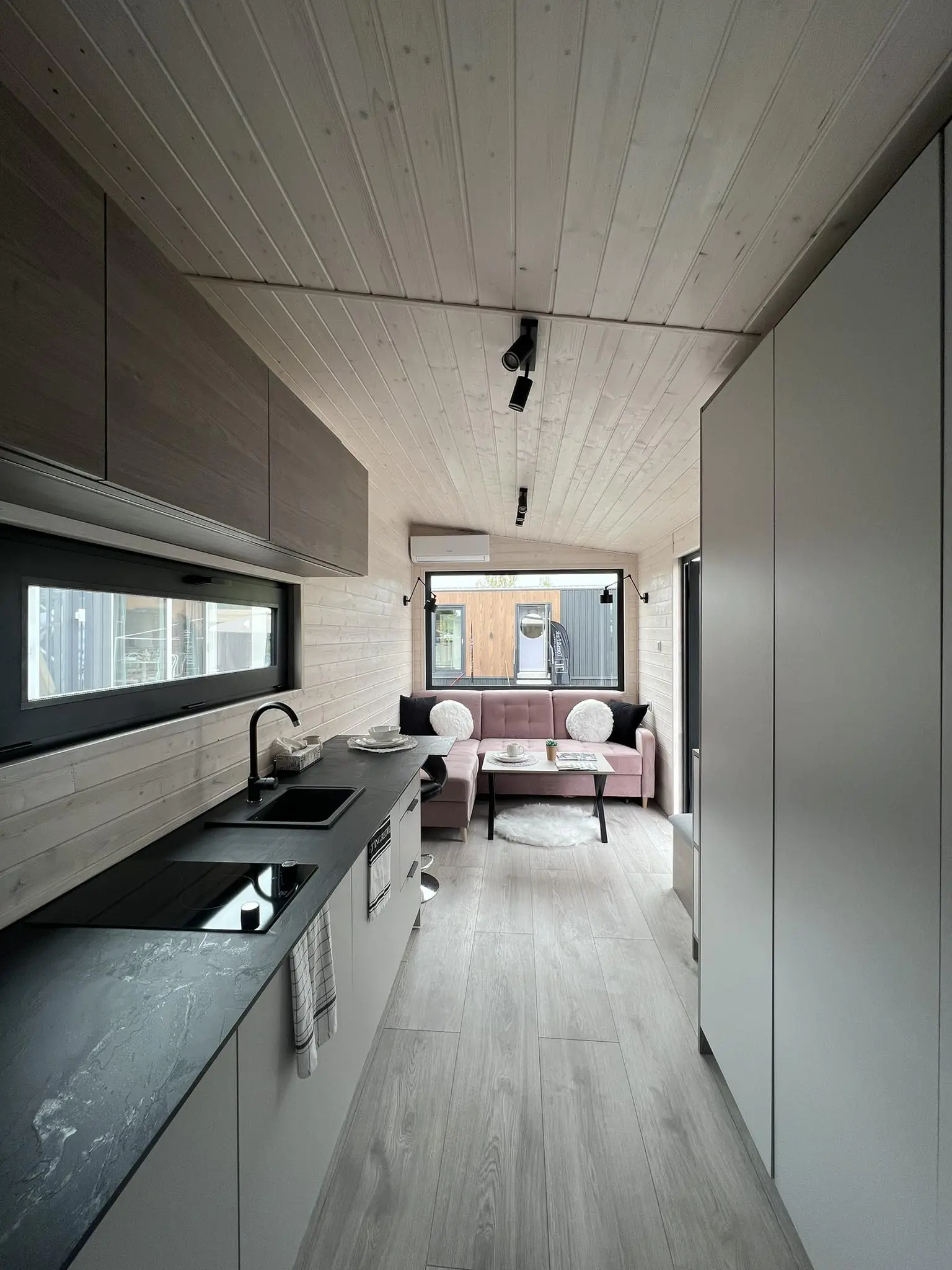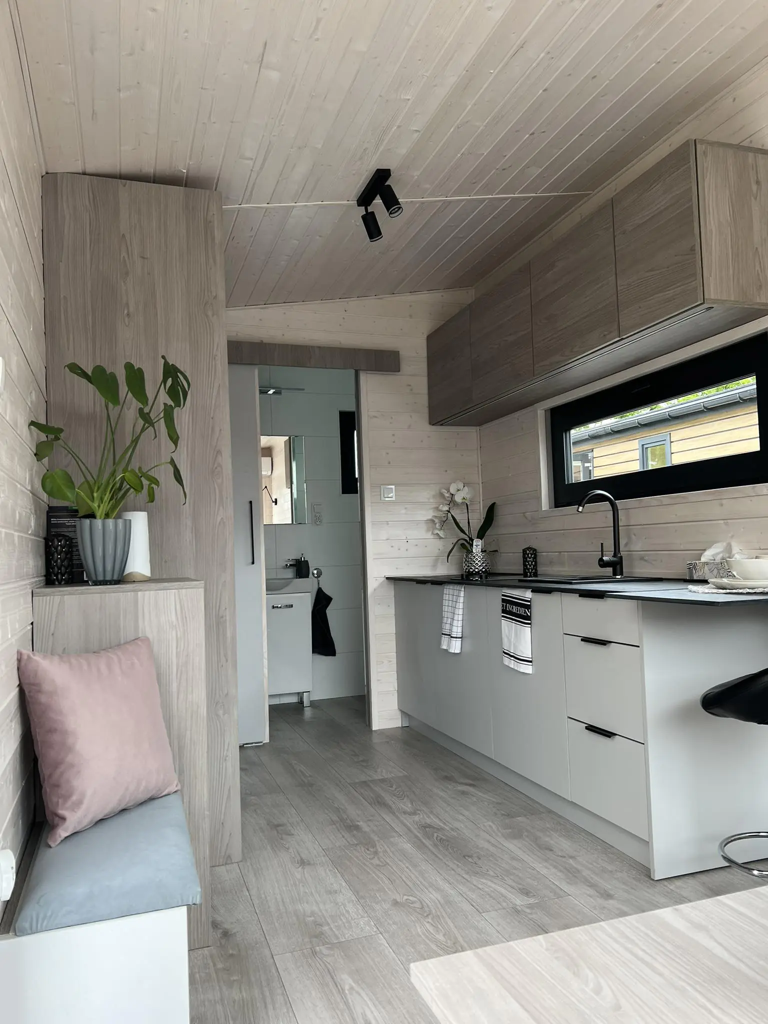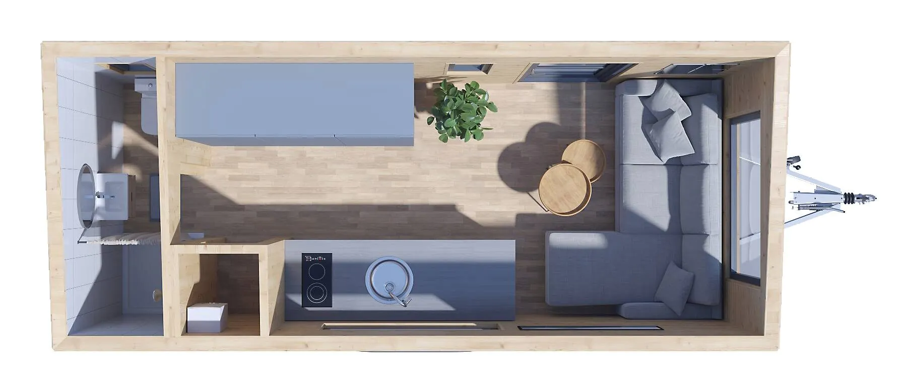 Całkowita powierzchnia domku mobilnego wynosi 15 mkw., co sprawia, że będzie on idealny dla osób podróżujących w pojedynkę lub w parze. Mniejsze wymiary sprawiają również, że łatwiej jest znaleźć odpowiednie miejsce na dom mobilny. Jeśli natomiast szukasz czegoś nieco większego, możesz sprowadzić model Bingo+, który został wzbogacony o dodatkową sypialnię.